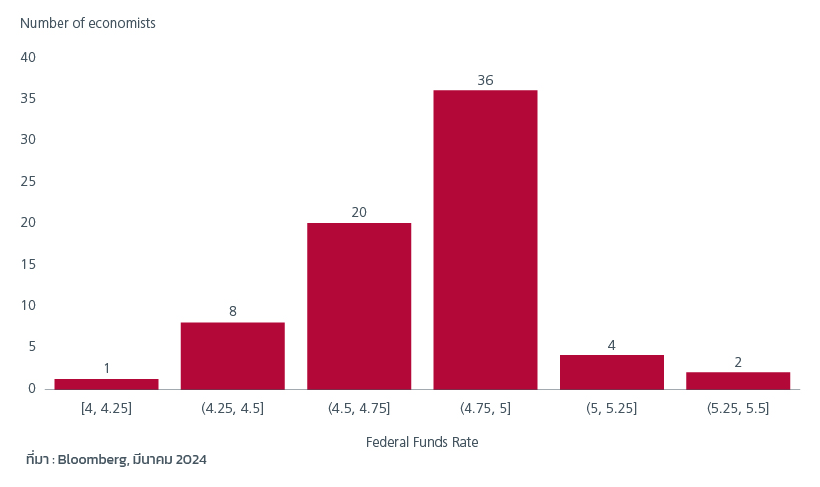 รูปที่ 2: การคาดการณ์ Fed funds rates ณ สิ้นปี 2024 ของนักเศรษฐศาสตร์