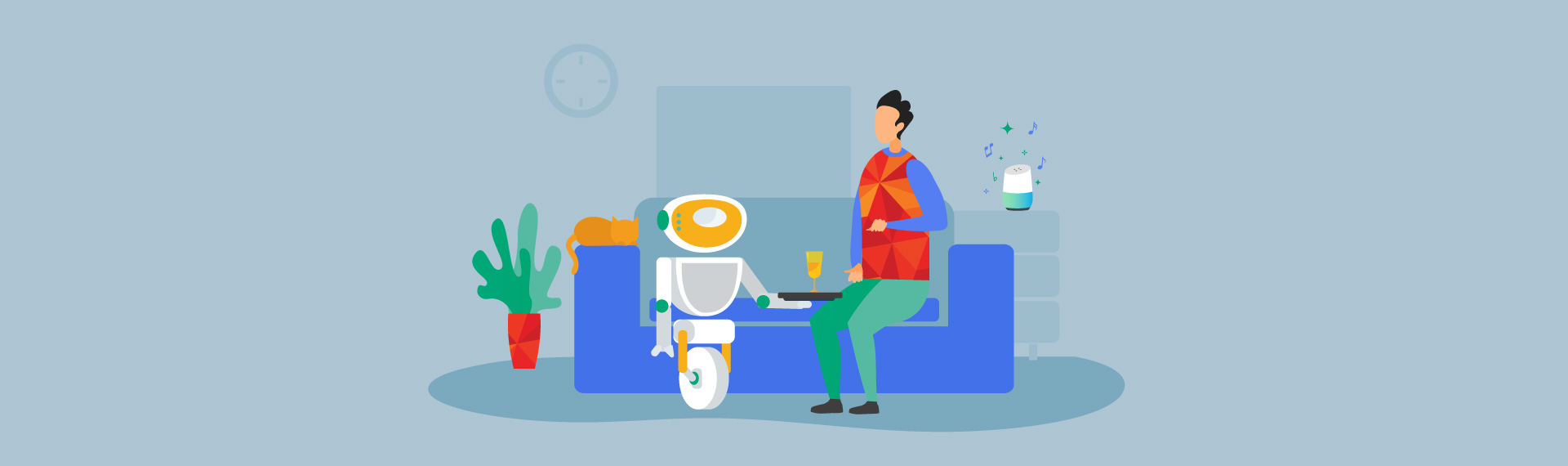 คุณสมบัติของสมาร์ทโฮมที่รู้จักกันมากที่สุดก็คือผู้ช่วยที่เป็น AI อย่างเช่น Alexa ของ Amazon หรือ Google Home อุปกรณ์ที่มีประโยชน์เหล่านี้สามารถตอบได้ทุกประเภทคำถาม เล่นเพลง และโทรออก นอกจากนี้ ยังสามารถพูดคุย สนทนาได้อีกด้วย – แล้วใครจะยังต้องการมนุษย์อีกต่อไป ใช่ไหม?